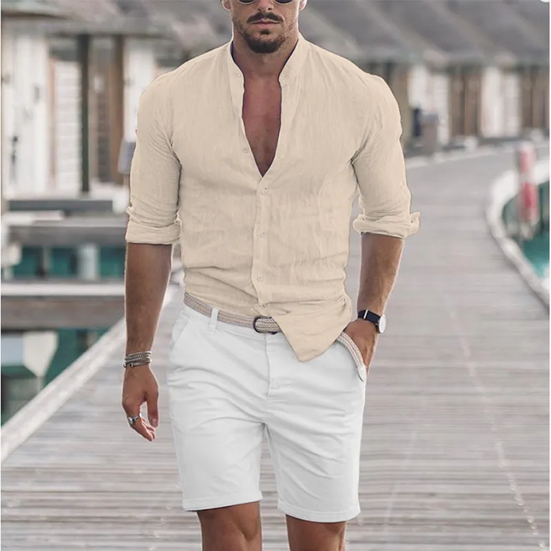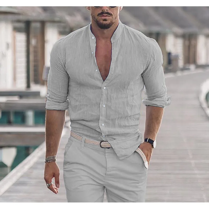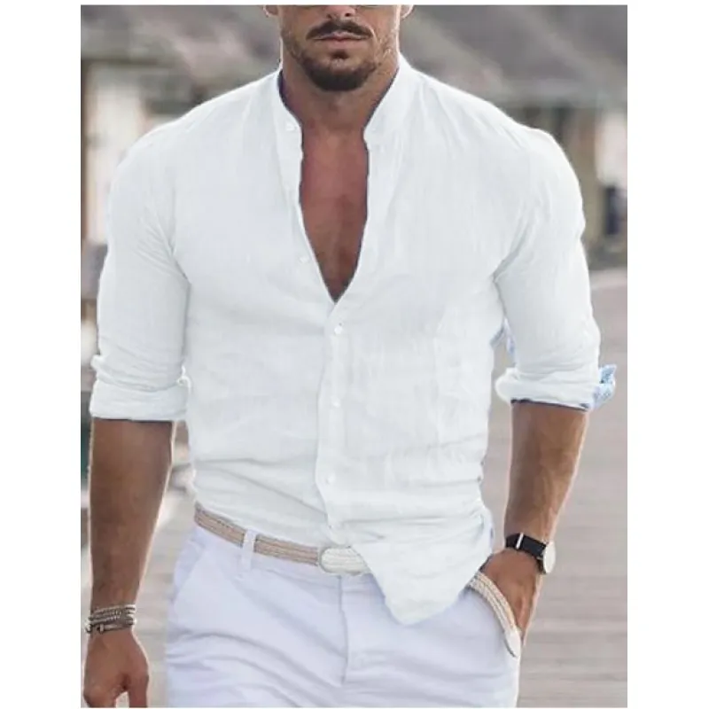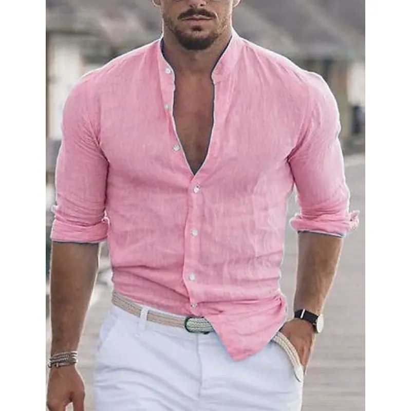Men’s Long Sleeve Shirt With Button Casual Solid Color Tops For Spring Autumn